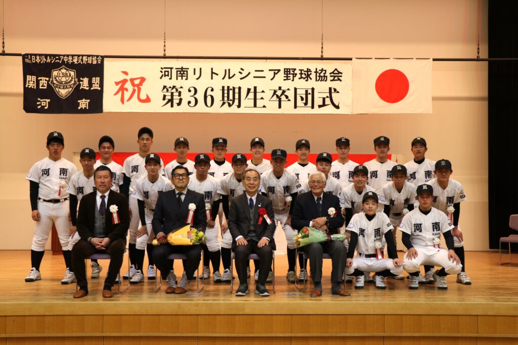 NEWS お知らせ2026/01/18(日) NEWS LIST 第36期生 卒団式㊗️開催🎉 寒さも少し和らぎ、気持ちのいい晴天の日となった1月18日(日)、河南町立総合体育館ぷくぷくドームで、第36期生の卒団式が行われました。 中学1年生からの思い出を振り返り、一人ひとりの成長を実感する、笑いあり、涙ありの卒団式でした😄 36期生の皆さん!二度とない中学時代を河南シニアで過ごした経験を胸に、次のステージにおいても更なる成長をめざして、ガンバレ〜📣📣📣 NEWS LIST